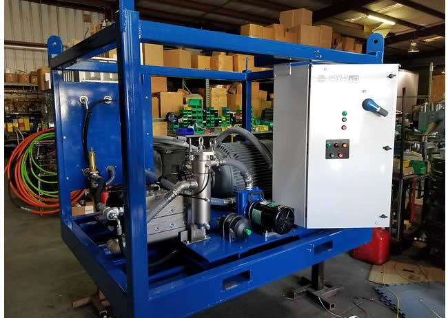 This is an Industrial marvel which generates a super stream of high velocity cavitation bubbles for highly efficient cleaning which can strip fouling, corrosion and coatings to bare metal if desired, this unit is off-shore rated with an electric driver, also available in Diesel.