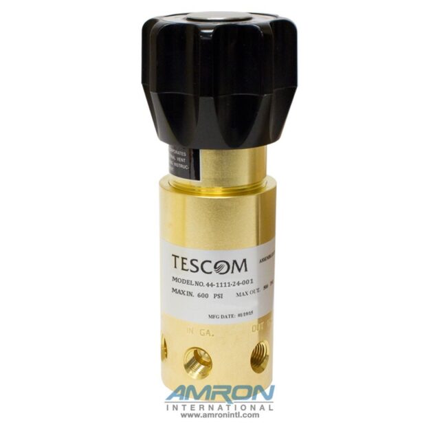 Tescom 44-1111-24-001 high pressure, low flow venting regulator with Non-Venting and Viton o-rings offers a piston sensed design, control pressures of 0-500 PSIG / 0-34.5 bar with a low torque setting and large hand-knob.